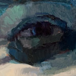 He looks at me and laughs, reminds me to do the same – what am I laughing at, or who? Is this “being” disguised in a veil of pigment, or hiding behind it? We wouldn’t get it, only the brush speaks truth.